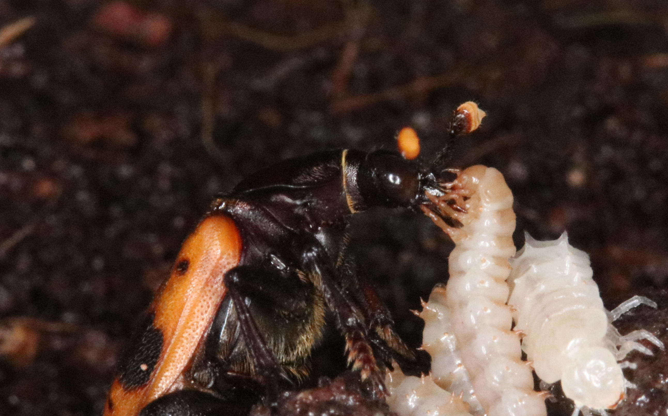 小さな虫けらの口元に運ばれてくる餌を横取りして